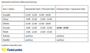 Česká pošta si dovoluje informovat o dočasné změně hodin pro veřejnost provozovny 582 82 Golčův Jeníkov. Rozsah hodin pro
