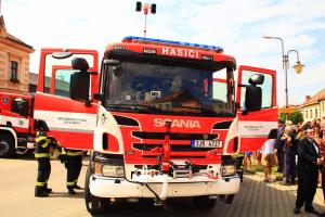 Sobota 8. Července se zapsala do historie našeho sboru zlatým písmem. Ve čtrnáct hodin proběhlo na Náměstí T.G.M. slavnostní předání nového zásahového automobilu CAS 30 8600/540/S2VH Scania 6x6.