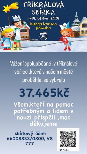 V tříkrálové sbírce se vybralo 37 465 Kč. Děkujeme všem, kteří na pomoc potřebným a lidem v nouzi přispěli.
