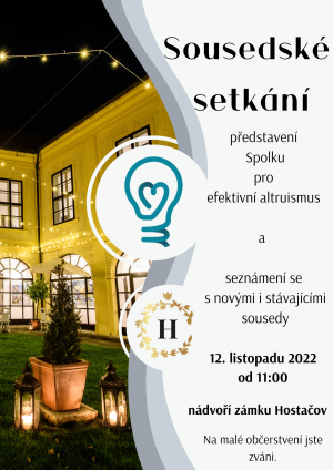 Dne 12.11.2022 od 11 hod. se vám na nádvoří zámku Hostačov představí Spolek pro Efektivní altruismus.