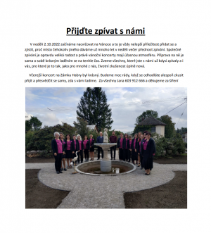 Ženský pěvecký sbor DONATIO ARTIS Golčův Jeníkov pod vedením sbormistra Ondřeje Mejsnara Vás srdečně zve na nácvik vánočních koled. Více informací Vám ráda podá Jana Machová na tel. čísle 603 912 666.