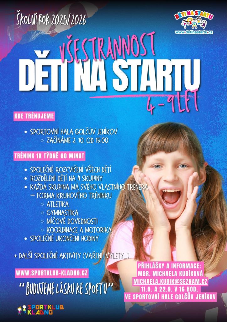 Projekt "Děti na startu" je sportovní kroužek pro děti od 4 do 9ti let. Děti si na něm vybudují lásku ke sportu, najdou nové přátele a zažijí spoustu zábavy!