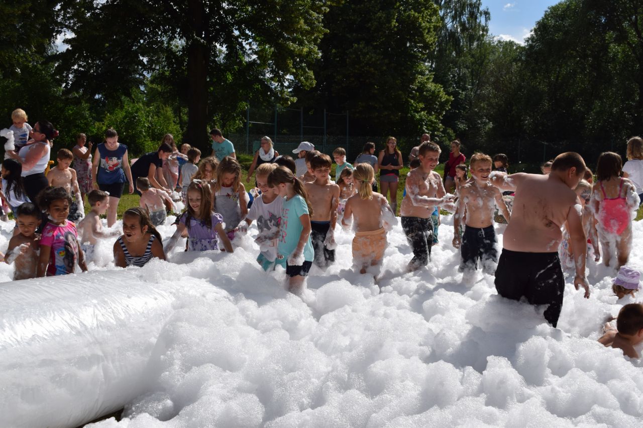 Den dětí jsme společně oslavili 2.6.2018 za místní sokolovnou, kde jste mohli mezi stromy najít pohádkové bytosti u různých stavišt´. Programem nás provedl Dj Vesy a místní SDH Golčův Jeníkov, který na závěr akce se postaral o opravdovou pěnovou párty. Mraky pěny se valily přes celý palouček za sokolovnou. Myslivci se postarali o vzdělávací program a dokonce jste si mohli zastřílet na terč.