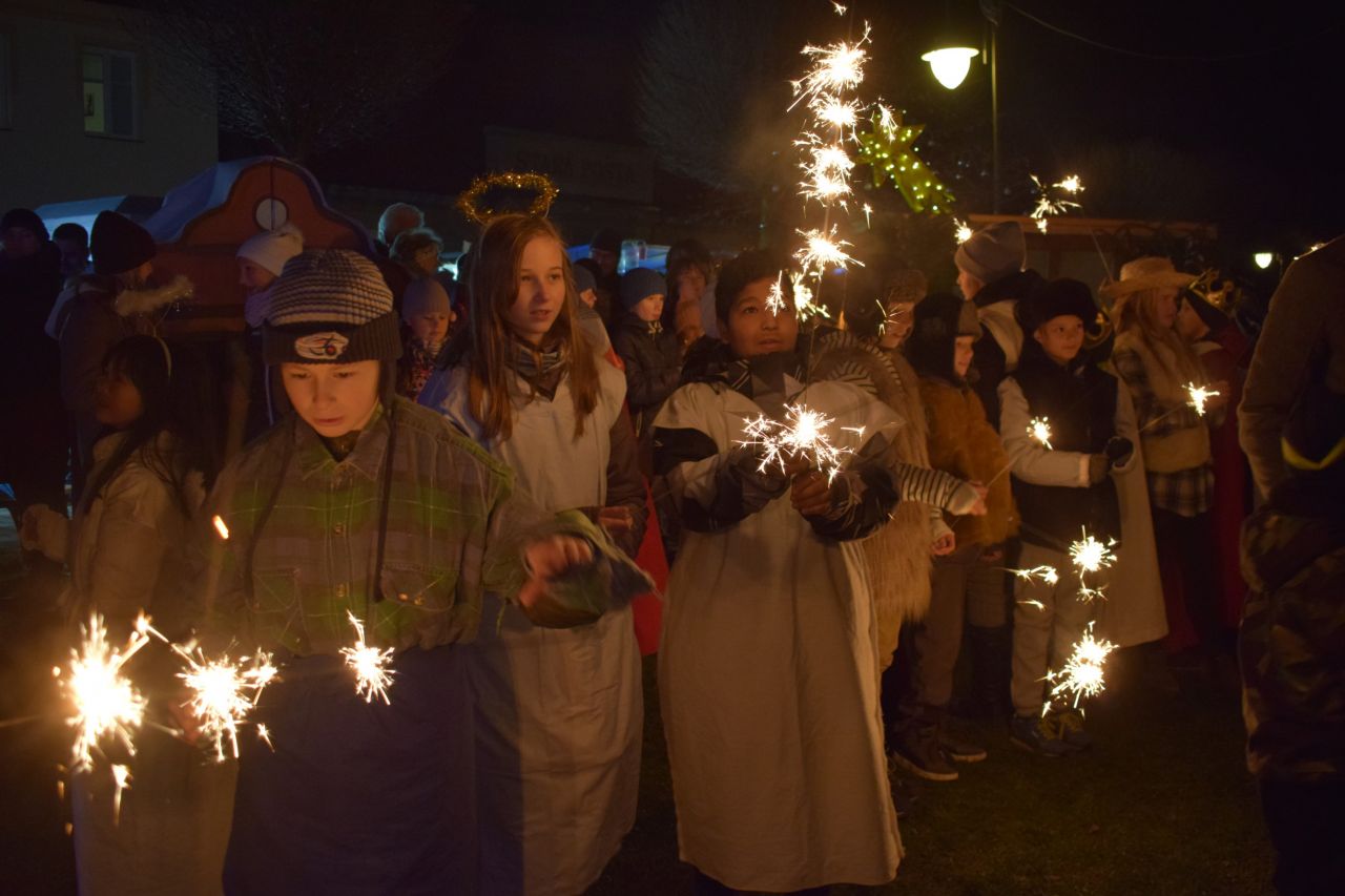 Tradičně jste mohli uvítat děti z mateřské školy, které si pro Vás nacvičily veselé vánoční písně. Dále pěvecký sbor Donatio Artis a žáky ZÚŠ ze Světlé nad Sázavou (pobočka Golčův Jeníkov) v doprovodu paní Olgy Fialové. Živý betlém Vám odehráli žáci 5. třídy ZŠ Golčův Jeníkov, kteří sršeli dobrou náladou.