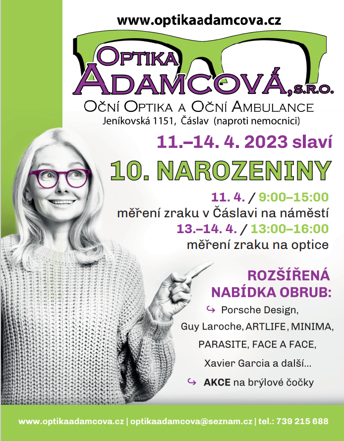 Oční optika a Oční ambulance Adamcová Čáslav nabízí měření zraku v Čáslavi na náměstí a na optice.