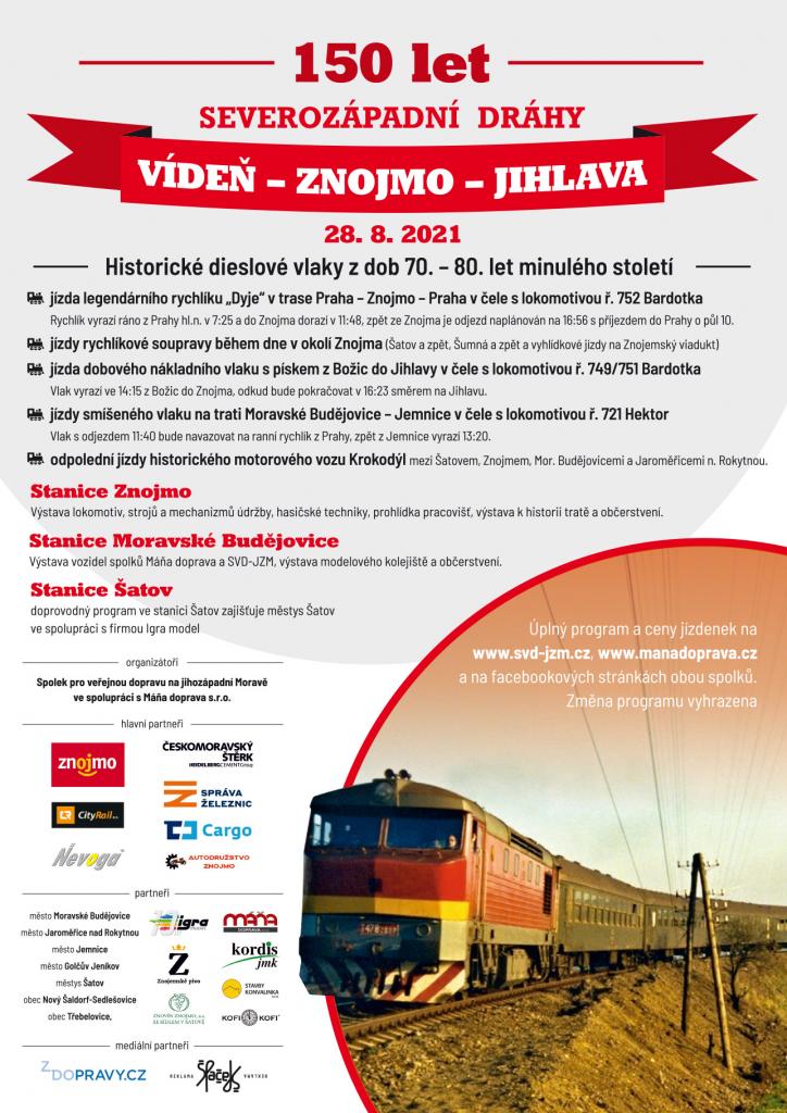 Při příležitosti oslav 150let Severozápadní dráhy se dne 28.8.2021 po letech znovu objeví mezi Prahou a Znojmem rychlík „Dyje“,který nás vrátí do období 70. – 80. let minulého století. Vzhledem k tomu, že Město Golčův Jeníkov je jedním ze sponzorů, bude rychlík zastavovat i u nás - v 8.48 a 20.05 h