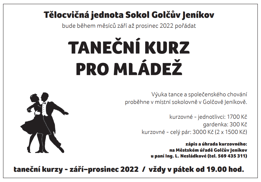 Taneční kurz začíná již tento pátek 9.9.2022.