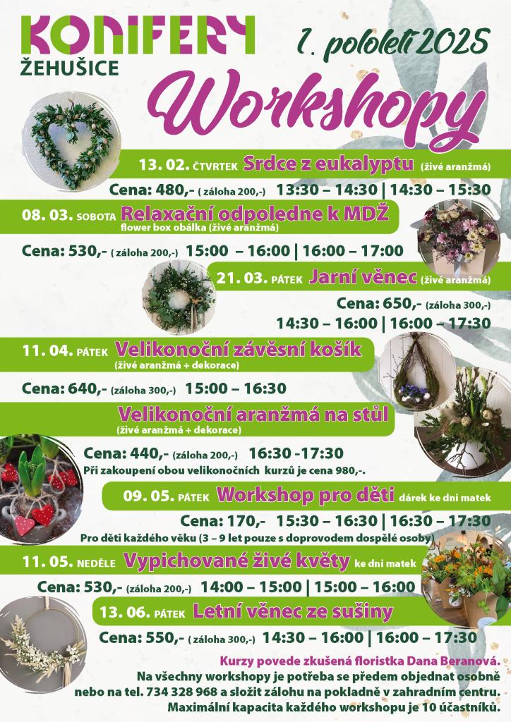 Nabídka Workshopů Zahradního centra Konifery s.r.o., Zámecká 154, 285 75 Žehušice.